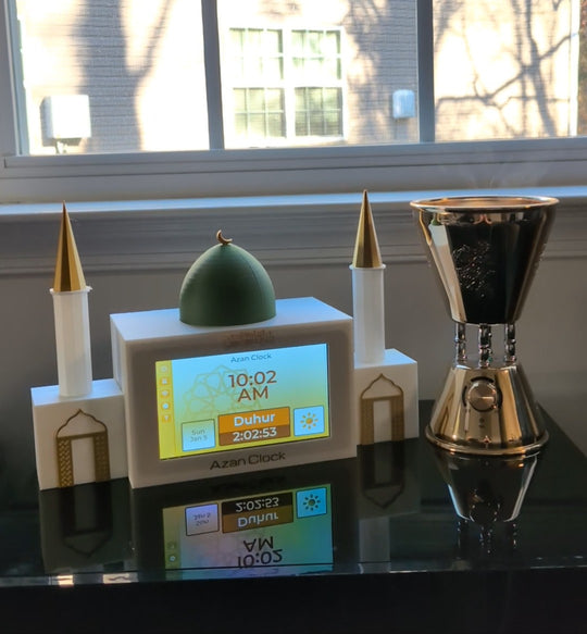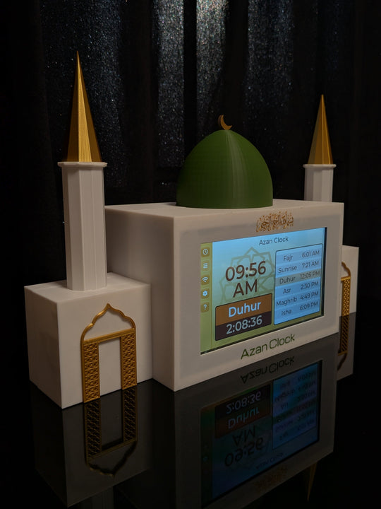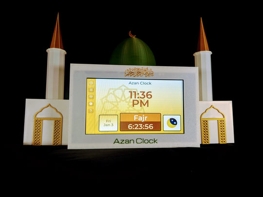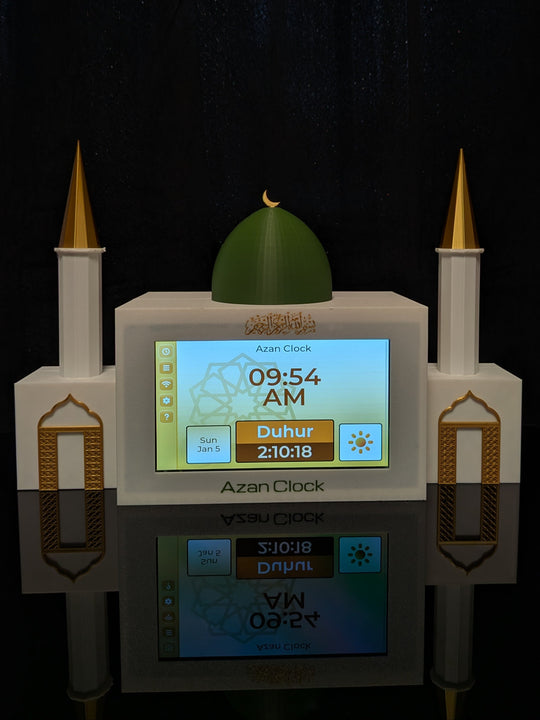The Azan Clock is an innovative blend of modern technology and faith, designed to enhance your home with both functionality and elegance. Featuring a mosque-inspired design and a 7-inch touch display, it serves as a beautiful...Regular price $130.00Regular price $130.00 -