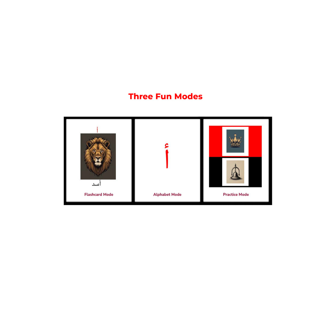 - Alphabet mode is useful to teach individual Arabic letters to your kids.